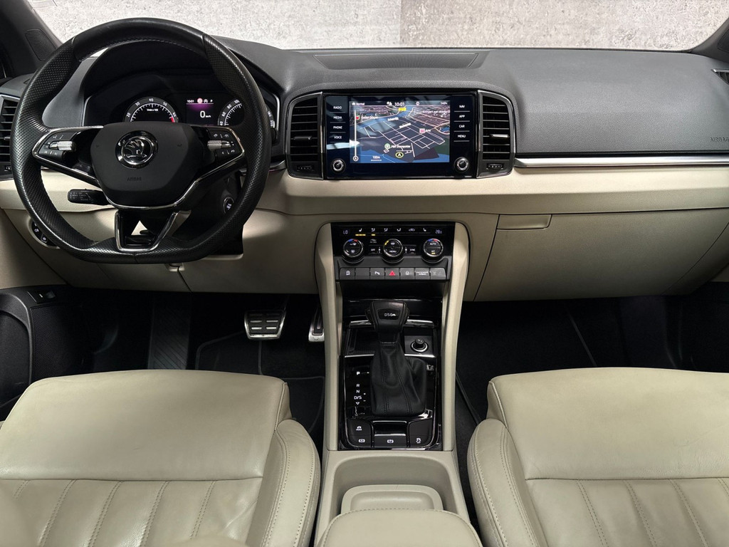Kommaar-kommaar-kommaar, aldus de achteruitrijcamera. Iedere centimeter vrije ruimte komt haarscherp in beeld. Schadevrij inparkeren maar! Adaptive cruise control is veilig en comfortabel. De snelheidsregelaar houdt automatisch afstand tot het voertuig dat voor u rijdt. Rijden-stilstaan, rijden-stilstaan. Niks is irritanter en vermoeiender dan filerijden. Daar heeft deze Škoda Karoq een oplossing voor: de file assistent, die met radarmeting permanent het tempo aanpast op de voorligger. Zelfs als die stopt. Gemak dient de mens. Dankzij de spraaksturing bedient u de belangrijkste functie met uw stem. Pech oplossen en zelfs voorkomen? Gaat eenvoudig. Via Connected Services heeft u alle data in de hand, gewoon op de smartphone! Wat u ook in deze auto kunt vinden zijn premium audiosysteem, navigatiesysteem met harde schijf, WIFI-hotspot, automatische airconditioning, draadloos opladen en DAB ontvangst.