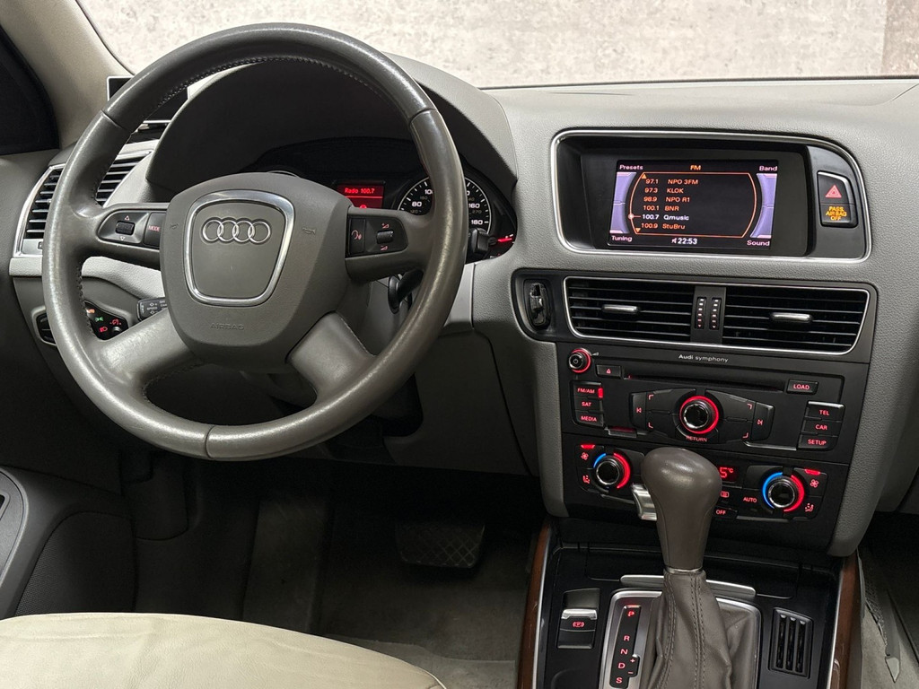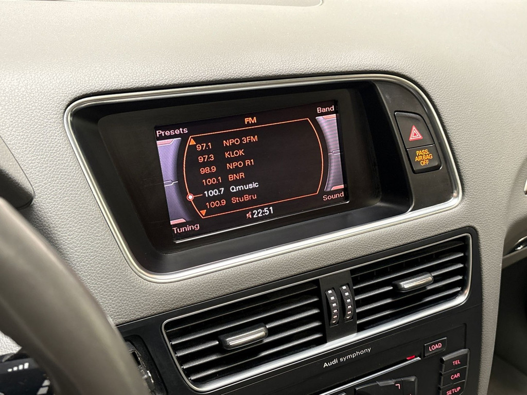 In deze Q5 vindt u niet alleen schakelaars op het stuur om het audio-installatiesysteem te bedienen, maar er is ook spraakbediening. Natuurlijk is er ook automatische airconditioning aanwezig. Ervaar het comfort van inparkeren met parkeersensoren. Deze auto laat zich moeiteloos in elk parkeervak manoeuvreren. Het drukke verkeer eist onderweg al uw aandacht op. Daarom is het goed dat deze Audi is voorzien van diverse systemen die u assisteren tijdens de rit. Een automatisch inschakelbare verlichting neemt het waar als het donker wordt of gaat schemeren, en schakelt dan automatisch de verlichting in. Op dezelfde manier "ziet" de regensensor de eerste spatjes regen en schakelt dan de ruitenwissers in, en als het harder gaat regenen zet hij de ruitenwissers ook in een snellere stand. Nooit meer last van een slapende rechtervoet dankzij de uitgekiende cruise control! Wat u ook in deze auto kunt vinden zijn automatisch dimmende binnenspiegel, lederen stuur, centrale deurvergrendeling met afstandsbediening en boordcomputer.