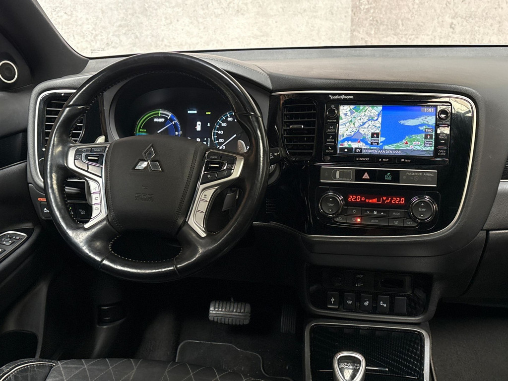 Betrouwbaar in kwaliteit, een topper in rijprestaties en qua conditie in blakende vorm. Deze Mitsubishi Outlander staat voor u klaar! De krachtige hybridemotor van deze auto is gekoppeld aan een automatische transmissie. De auto is voorzien van een mooie en comfortabele lederen bekleding. Op koude en donkere dagen zijn de verwarmbare voorstoelen een uitkomst. Pittig rijden wordt nog comfortabeler dankzij de fraaie sportstoelen. Licht, lucht, ruimte en gemak wordt verzorgd door het elektrisch bedienbare glazen panoramadak. De elektrisch bedienbare achterklep opent met een druk op de knop. Bij de uitrusting van deze auto horen onder meer 18 inch lichtmetalen velgen, LED koplampen, zwarte hemelbekleding, dakspoiler, donker getint glas achter en in delen neerklapbare achterbank.